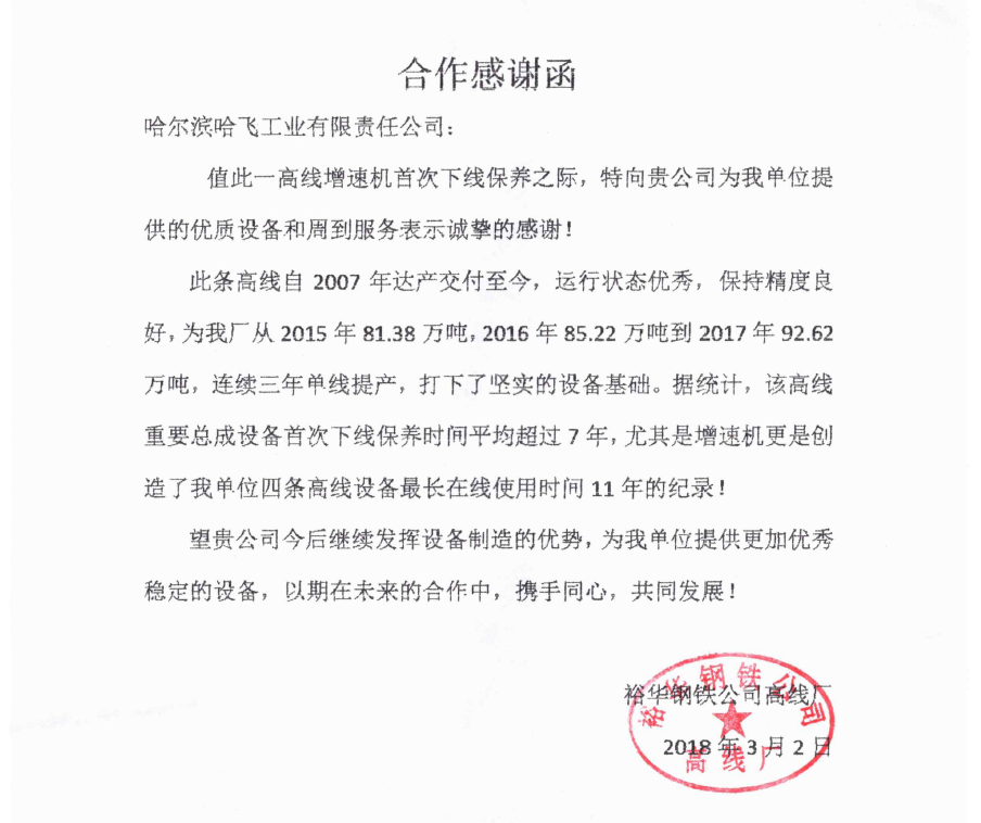 哈爾濱哈飛工業(yè)有限責(zé)任公司旗下的機(jī)電設(shè)備制造產(chǎn)業(yè)是目前國(guó)內(nèi)規(guī)模大、專(zhuān)業(yè)的高速線(xiàn)材軋機(jī)和棒材軋機(jī)整機(jī)及備件的生產(chǎn)制造企業(yè)。公司現(xiàn)坐落于哈爾濱市平房區(qū)汽車(chē)零部件工業(yè)園B區(qū),占地面積30000多平方米?,F(xiàn)有員工近550人,其中具有中高級(jí)職稱(chēng)的研發(fā)及工程技術(shù)人員100余人。   公司曾獲得冶金部授予的“高線(xiàn)軋機(jī)設(shè)備優(yōu)單位”稱(chēng)號(hào)、國(guó)家技術(shù)進(jìn)步二等獎(jiǎng)等獎(jiǎng)項(xiàng),公司生產(chǎn)的十八項(xiàng)高線(xiàn)軋機(jī)重要部件通過(guò)了技術(shù)鑒定... +MORE