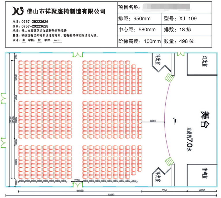 1、有階梯的禮堂場地階梯深度建議950mm-1000mm、為佳、階梯高度100mm為佳,如果不配置寫字板階梯深度可以做到900mm.